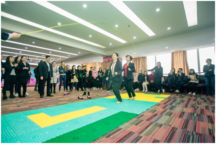 領(lǐng)導(dǎo)與員工一起參與指壓板跳繩