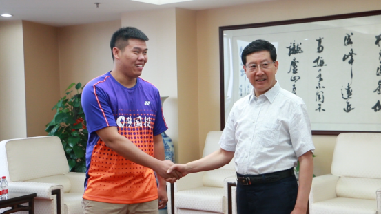 8月29日楊力驍將前往天津參加全運(yùn)會(huì)群眾組羽毛球決賽,臨近出發(fā)前,董事長(zhǎng)薛季民特意前來(lái)祝賀。他表示,這次打入決賽,能代表陜西、代表公司前去“戰(zhàn)斗”,一定要發(fā)揚(yáng)體育精神,努力拼搏。最后,薛季民鼓勵(lì)道:“預(yù)祝你獲得好成績(jī),我們都在公司等你凱旋而歸!”