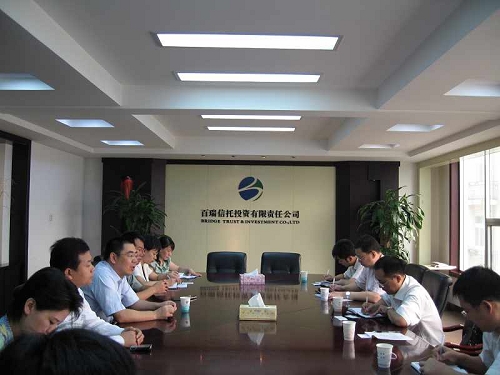 2007年8月7日至8月13日,趙輝副總裁率信托一部、投資銀行部、信托財(cái)務(wù)部、計(jì)劃財(cái)務(wù)部、人力資源部等部門(mén)負(fù)責(zé)人和業(yè)務(wù)骨干一行七人赴鄭州、濟(jì)南,與百瑞信托投資有限責(zé)任公司、中原信托投資有限公司、英大信托投資有限責(zé)任公司、山東省國(guó)際信托投資有限公司就行業(yè)發(fā)展戰(zhàn)略構(gòu)想、信托業(yè)務(wù)拓展情況、信托產(chǎn)品營(yíng)銷等方面與同行進(jìn)行交流、研討。