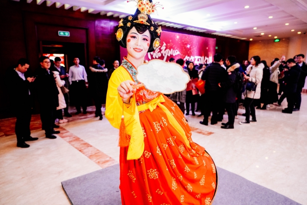 活動(dòng)開始,不倒翁小姐姐身著唐服,隨著歌曲《神話》的旋律,輕歌曼舞,帶著大家一起回到盛世大唐。演出現(xiàn)場(chǎng)光彩奪目,歡樂喜慶。