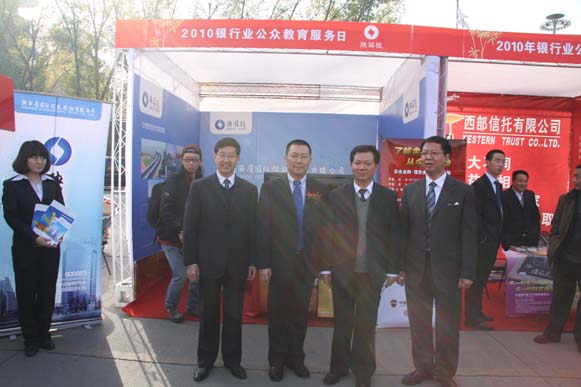 薛季民董事長參加了當(dāng)天的啟動儀式,并代表省內(nèi)3家信托公司接受了陜西電視臺等新聞媒體的采訪。陜西銀監(jiān)局李建華局長、西安市副市長金學(xué)峰、陜西證監(jiān)局局長助理孔兵等領(lǐng)導(dǎo)到我公司宣傳服務(wù)工作臺前視察指導(dǎo)工作。