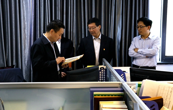 楊政國一行在公司領(lǐng)導(dǎo)陪同下參觀了公司發(fā)展和黨建工作展板,聽取了公司近年來經(jīng)營發(fā)展情況介紹。隨后,深入證券運營管理部、財富管理總部,了解證券交易和估值業(yè)務(wù)、信托知識和產(chǎn)品銷售情況。還深入三樓文化宣傳區(qū)和后臺辦公區(qū),了解公司機關(guān)建設(shè)、文化標識和黨建宣傳等工作。最后召開座談會,聽取了公司黨委和紀委工作匯報,與公司領(lǐng)導(dǎo)班子成員進行交流。