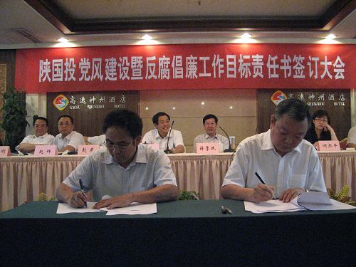 2007年8月24日下午,公司在高速神州酒店召開了陜國投黨風(fēng)建設(shè)暨反腐倡廉工作目標(biāo)責(zé)任書簽訂大會。