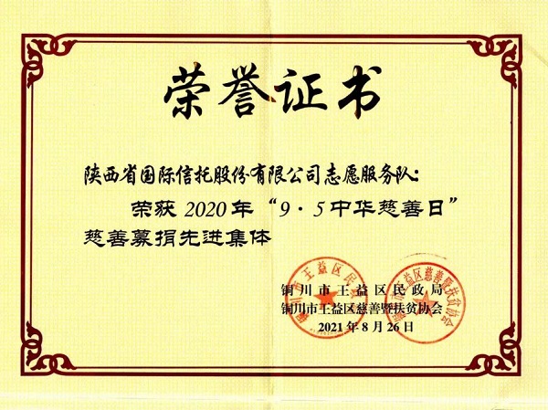 在信托存續(xù)期間,陜國(guó)投慈善信托項(xiàng)目組每年堅(jiān)持與合作公益機(jī)構(gòu)一同前往醫(yī)院、住所看望困難老兵,在與老兵交流的同時(shí)送去善款、物資等,持續(xù)讓困難老兵體會(huì)到社會(huì)的關(guān)愛與溫暖。因前期公益慈善工作較為突出,銅川市王益區(qū)民政局、銅川市王益區(qū)慈善暨扶貧協(xié)會(huì)授予陜國(guó)投“2020年度‘9·5中華慈善日’慈善募捐先進(jìn)集體”。