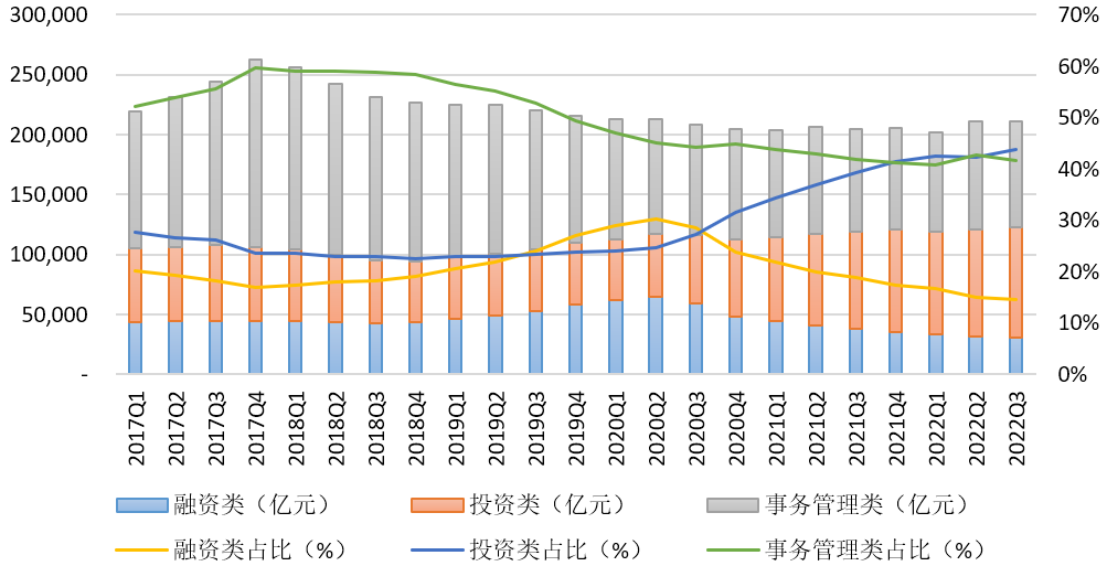 圖3 信托資產(chǎn)按功能分類(lèi)的規(guī)模及占比