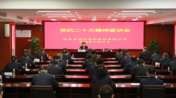 會議要求,公司上下要進(jìn)一步強化思想認(rèn)識,深刻領(lǐng)悟“兩個確立”的決定性意義,切實增強“四個意識”、堅定“四個自信”、做到“兩個維護(hù)”,不斷提高政治判斷力、政治領(lǐng)悟力、政治執(zhí)行力,更加自覺地用黨的二十大精神統(tǒng)一思想、統(tǒng)一意志、統(tǒng)一行動,緊跟習(xí)近平總書記奮進(jìn)新征程、建功新時代。要進(jìn)一步掀起學(xué)習(xí)熱潮,采取多種形式,組織廣大黨員干部員工原原本本學(xué)、全面系統(tǒng)學(xué)、持續(xù)深入學(xué),黨員領(lǐng)導(dǎo)干部要帶頭把好基調(diào)、把好導(dǎo)向,準(zhǔn)確、全面、生動地宣講好黨的二十大精神,做好全方位、多層次、立體式宣傳解讀,讓黨的二十大精神入腦入心。要在理解二十大精神精髓要義、掌握立場觀點方法、把握基本規(guī)律上下深功夫、細(xì)功夫、硬功夫,以強烈的政治責(zé)任感和歷史使命感做好學(xué)習(xí)宣傳貫徹工作,切實把改革創(chuàng)新發(fā)展的力量凝聚到落實黨的二十大對金融工作的各項部署上來,大力加快創(chuàng)新人才隊伍建設(shè),全力推動黨建文化與企業(yè)文化、信托文化、清廉文化相融合,全面推動“重塑再造陜國投”取得新成效。要弘揚馬克思主義優(yōu)良學(xué)風(fēng),增強學(xué)習(xí)的針對性和實效性,立足本職工作,緊密聯(lián)系公司實際,堅持學(xué)思用貫通、知信行統(tǒng)一,切實把貫徹落實黨的二十大精神體現(xiàn)到全面完成今年各項目標(biāo)任務(wù)和謀劃安排好明年工作目標(biāo)之中,體現(xiàn)到重塑再造陜國投的具體實踐中,體現(xiàn)到開展作風(fēng)建設(shè)專項行動之中,埋頭苦干、奮勇前進(jìn),努力把學(xué)習(xí)黨的二十大精神所取得的成果轉(zhuǎn)化為公司改革發(fā)展的強大動力,為奮力譜寫陜西高質(zhì)量發(fā)展新篇章貢獻(xiàn)陜國投力量。