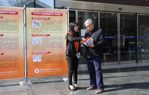 活動(dòng)現(xiàn)場,公司設(shè)置了“金融消費(fèi)咨詢臺”,向群眾發(fā)放《新〈消費(fèi)者權(quán)益保護(hù)法〉亮點(diǎn)解讀》、《金融消費(fèi)者權(quán)益保護(hù)宣傳資料》等,工作人員耐心解答消費(fèi)者咨詢,結(jié)合信托特點(diǎn),以易懂易記、生動(dòng)活潑的形式向公眾普及金融知識,引導(dǎo)消費(fèi)者科學(xué)選擇符合自身風(fēng)險(xiǎn)承受能力的信托產(chǎn)品,幫助消費(fèi)者提升保障財(cái)產(chǎn)安全的意識和能力。與此同時(shí),公司通過門楣?jié)L動(dòng)屏、電視顯示屏、設(shè)置立體展板等多種渠道,向廣大群眾宣傳金融消費(fèi)知識,幫助樹立正確的信托投資理念,強(qiáng)化自我權(quán)益保護(hù)意識,掌握自我權(quán)益保護(hù)方法,現(xiàn)場反響熱烈。